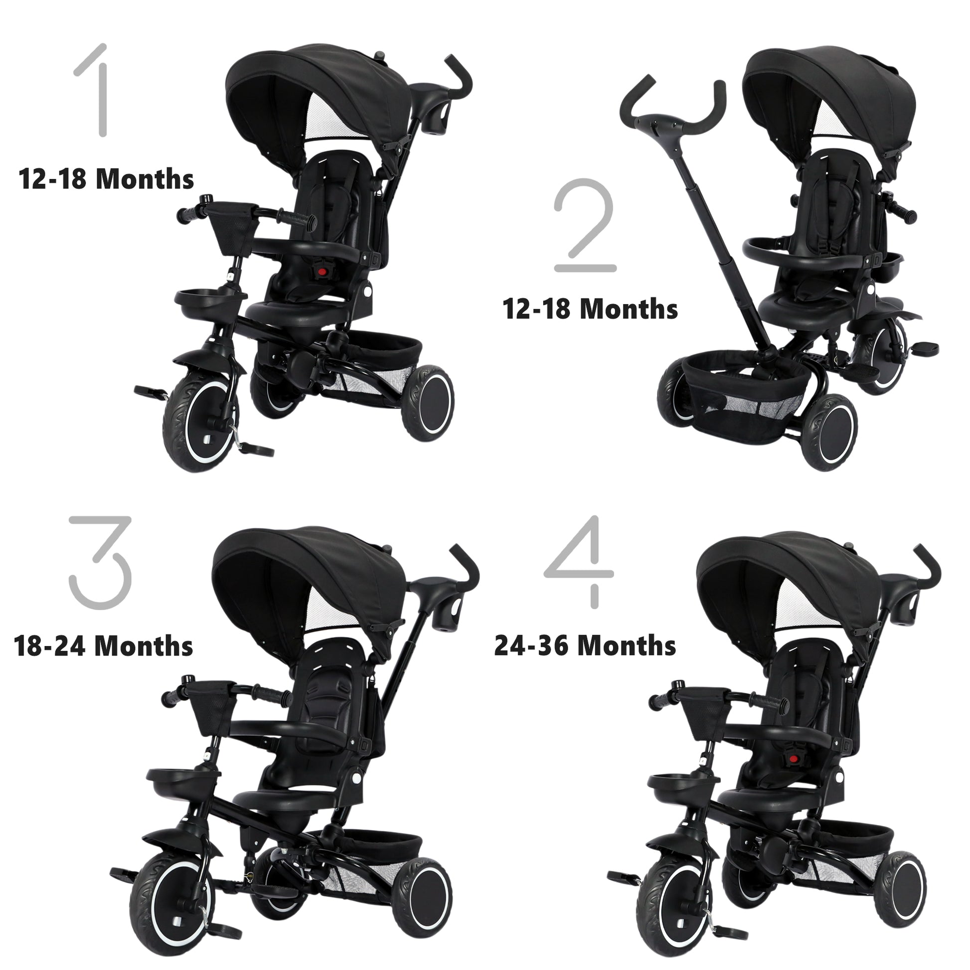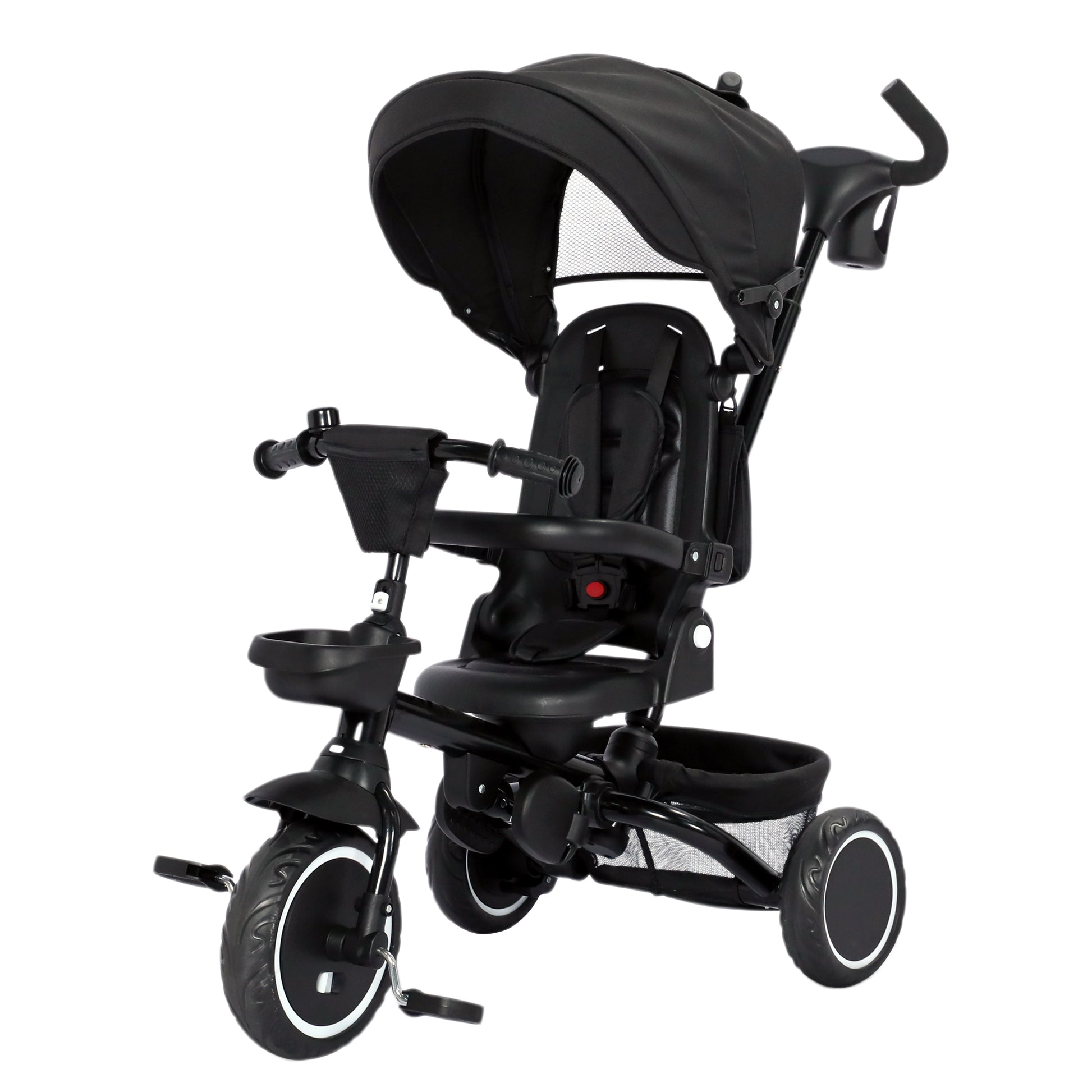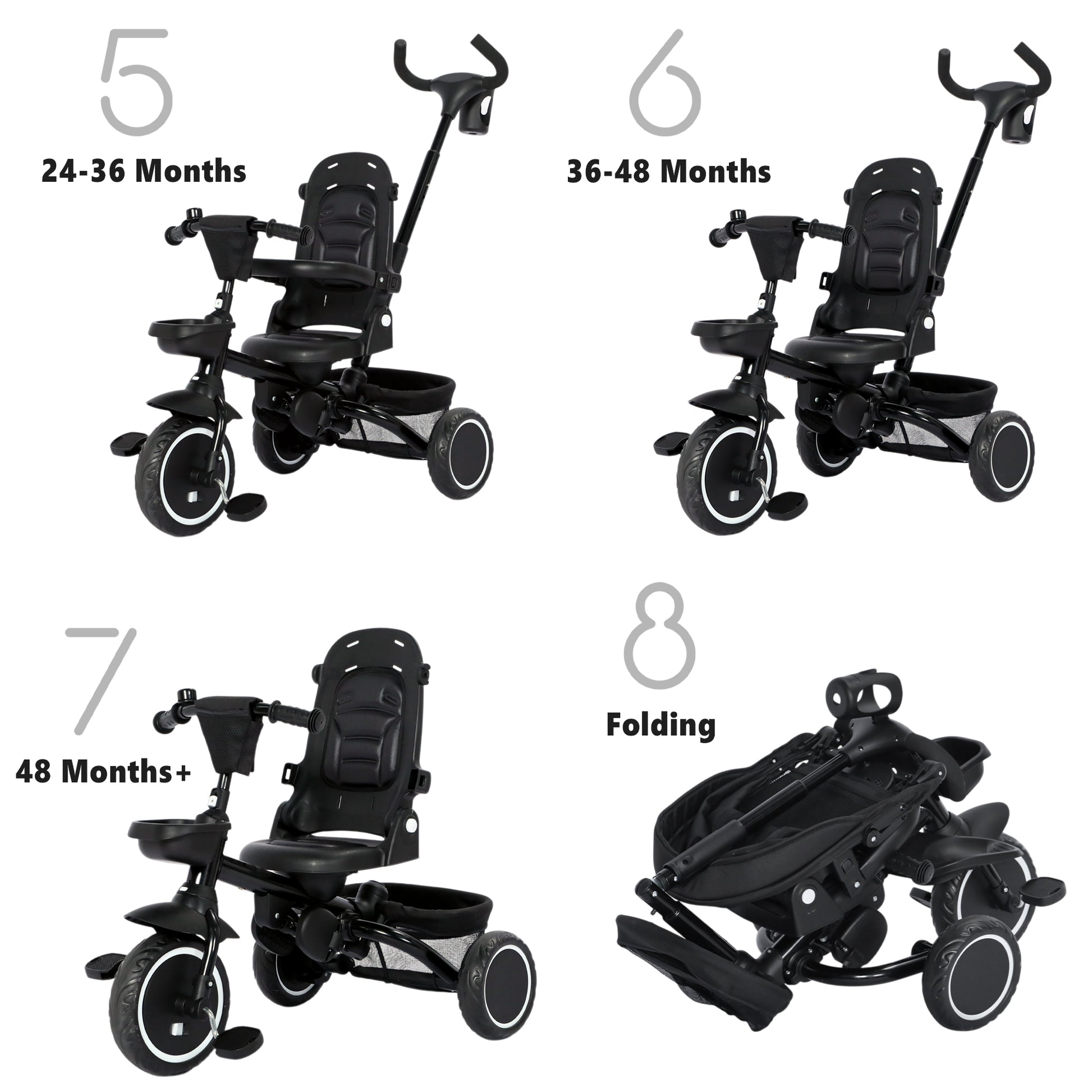 AILEEKISS 8-in-1 Kids' Tricycle Stroller, Folding Toddler Bicycle Unisex Ride Trike 1-6 Years, Black
