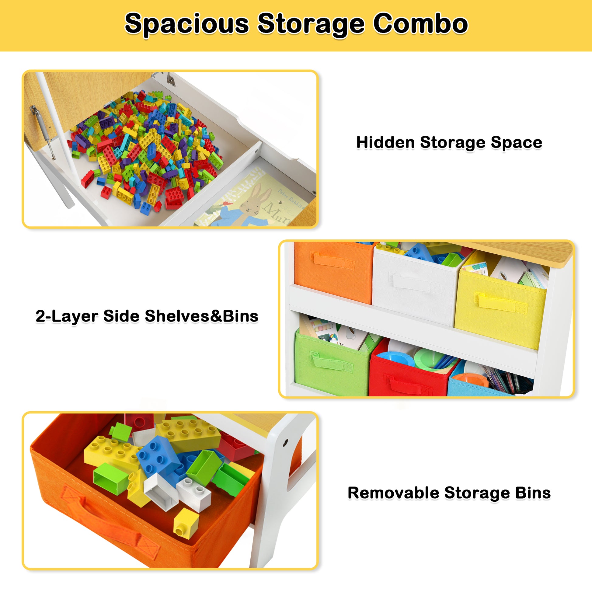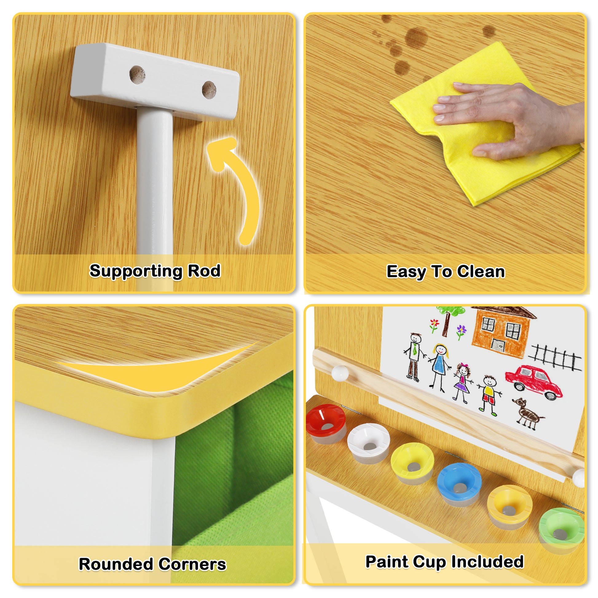 2 in 1 Kids Art Table and Chair Set, Toddler Art Easel & Craft Activity Desk w/ Paper Roll, Natural