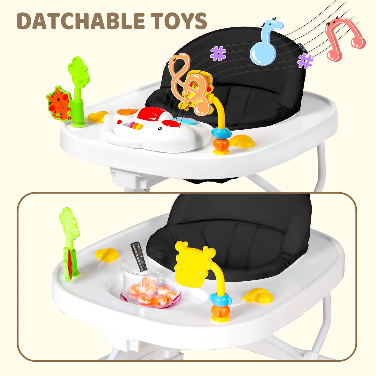 AILEEKISS 3 in 1 Baby Walker with Wheels, Foldable Infant Walker Girl Toddler Activity Center, Black
