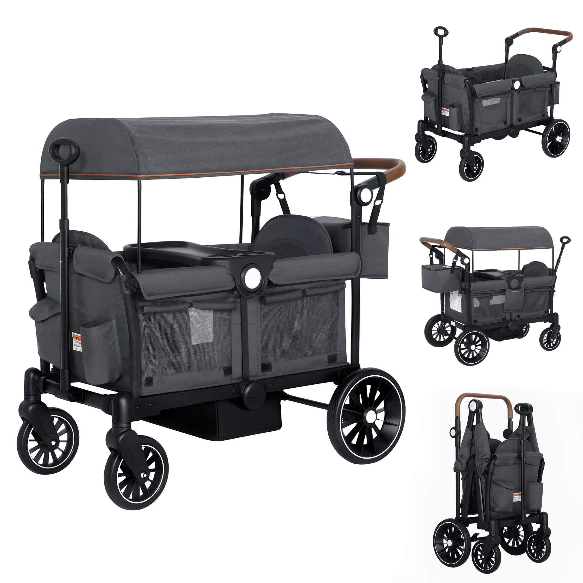 AILEEKISS 3-in-1 Wagon Stroller for 2 Toddlers, Collapsible Baby Wagon with Adjustable Handle, Grey