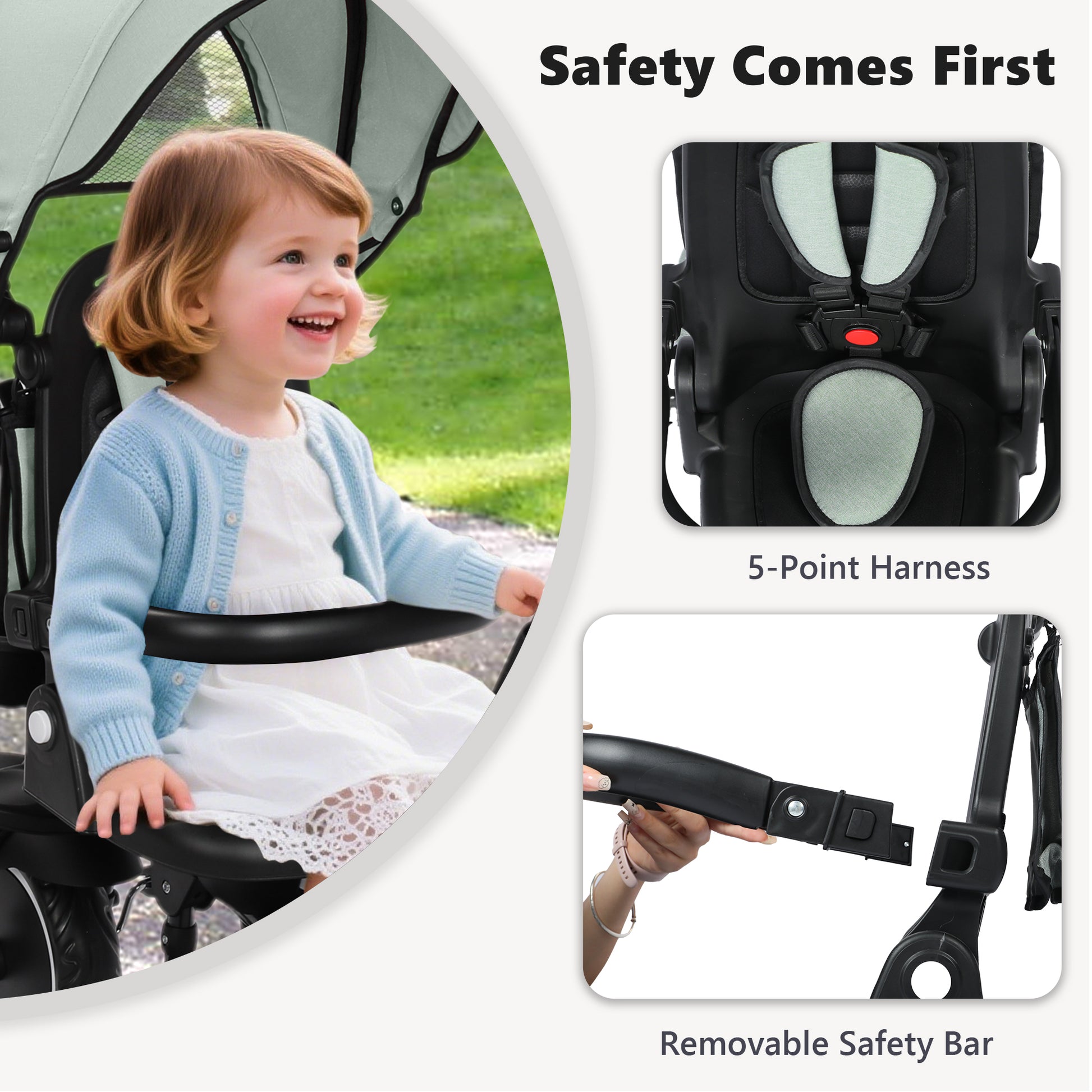 Our unisex stroller bike for toddler is equipped with high-grade rubber wheels, which have excellent shock absorption performance and can ride smoothly on various terrains. Equipped with adjustable parental handles, this kids push trike allows parents to guide their little one easily, providing support and independence for your child. Also features a 360° rotating seat, the push tricycles for 1-6 years old allows your child to face different directions while riding.