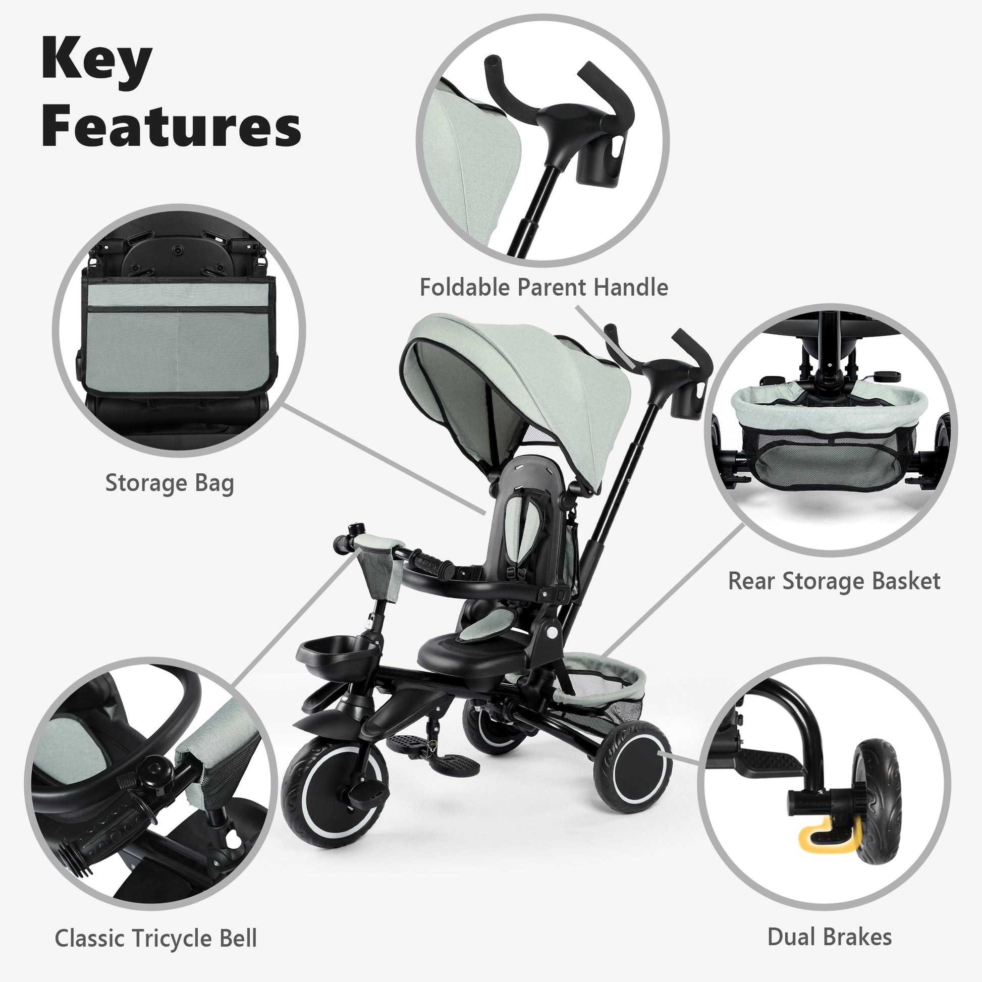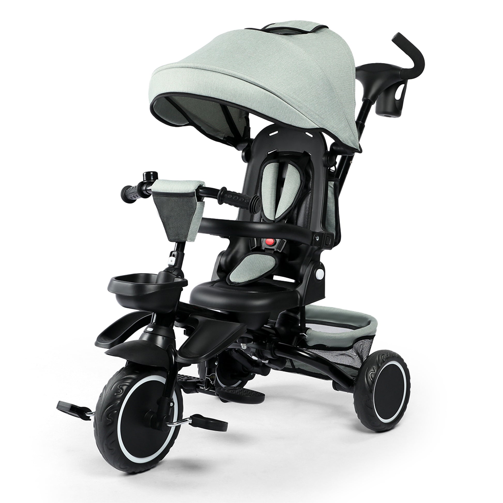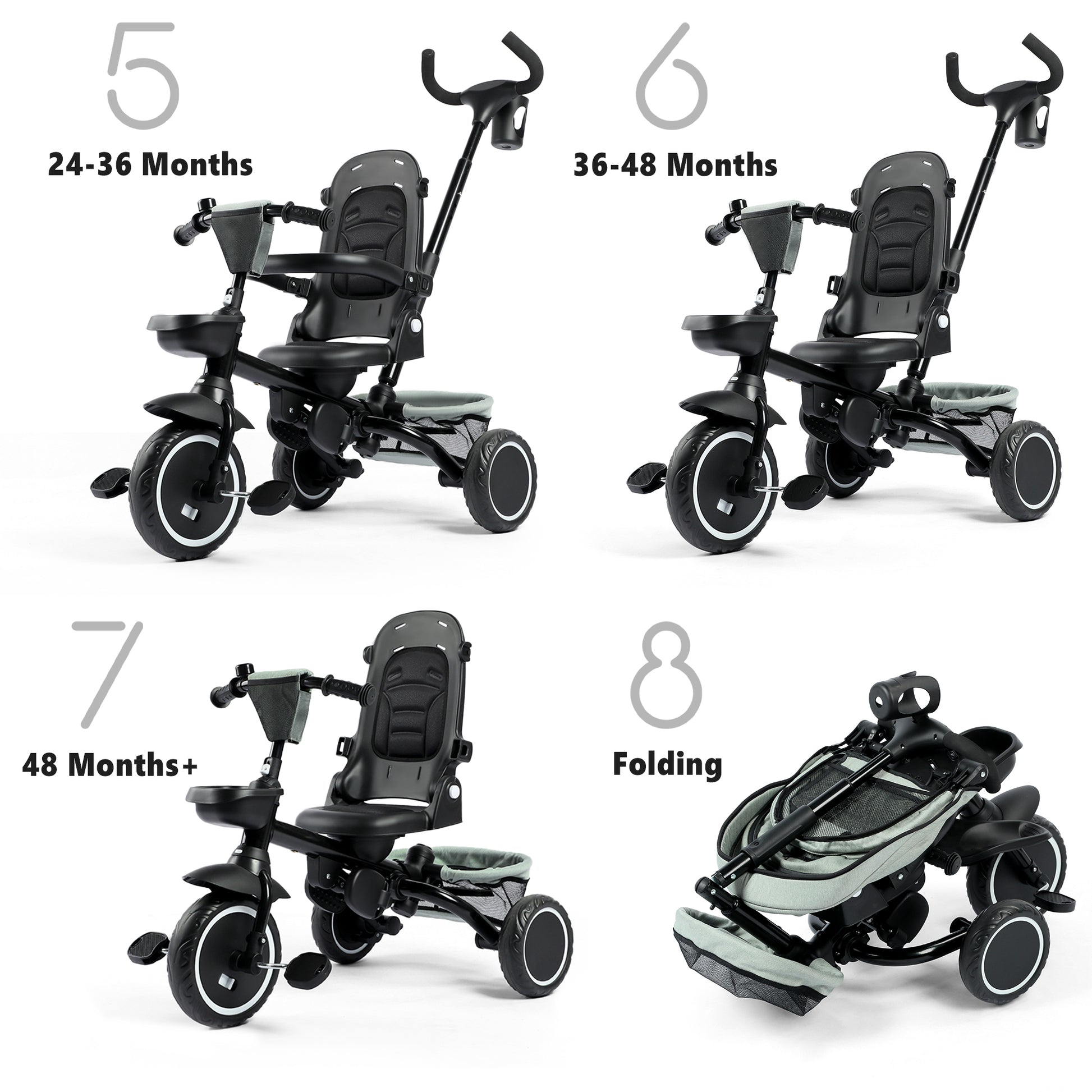 AILEEKISS 8-in-1 Kids' Tricycle Stroller, Folding Toddler Bicycle Unisex Ride Trike 1-6 Years, Mint Green