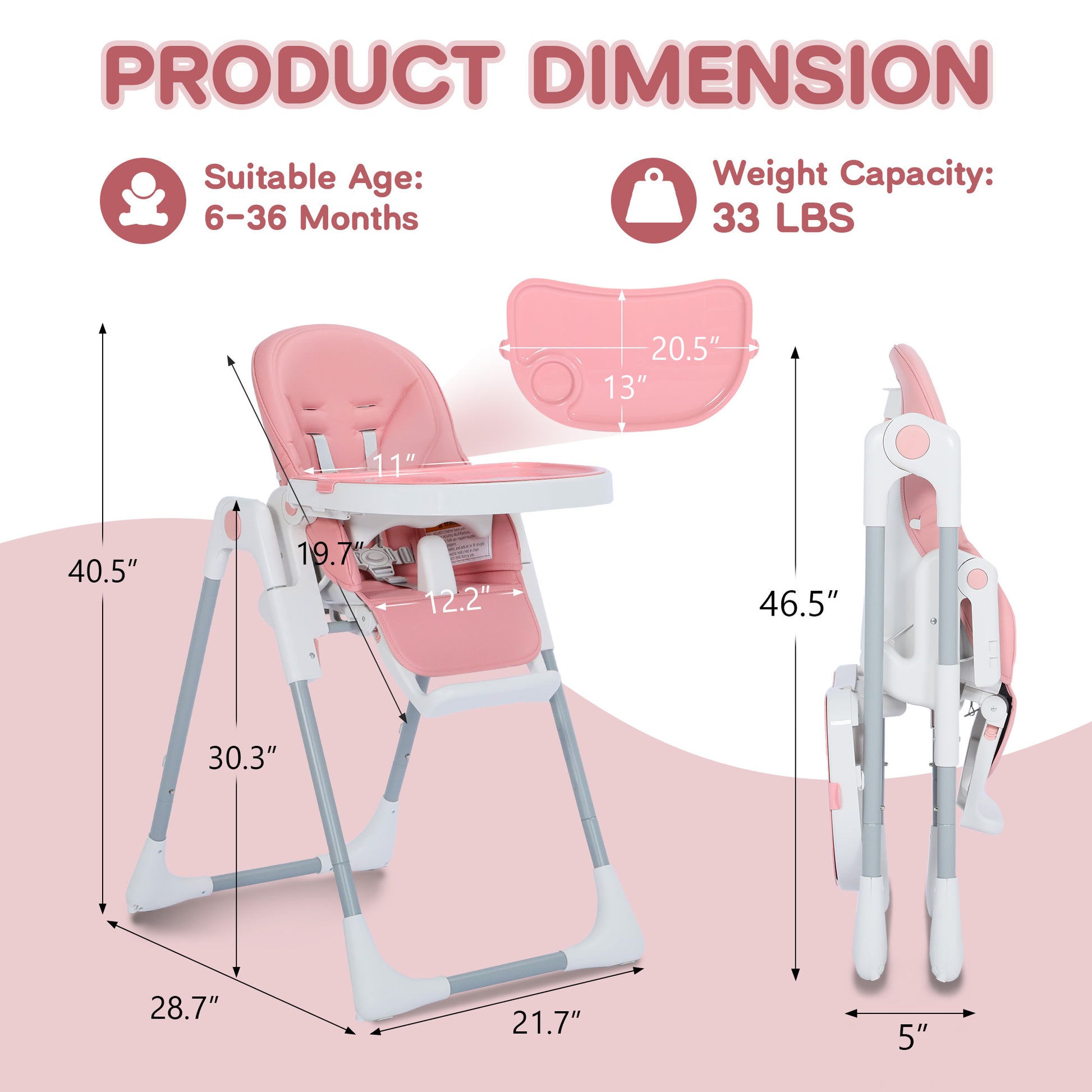 AILEEKISS Foldable High Chair for Baby, Toddler Eating Chair with Detachable Double Trays, Pink