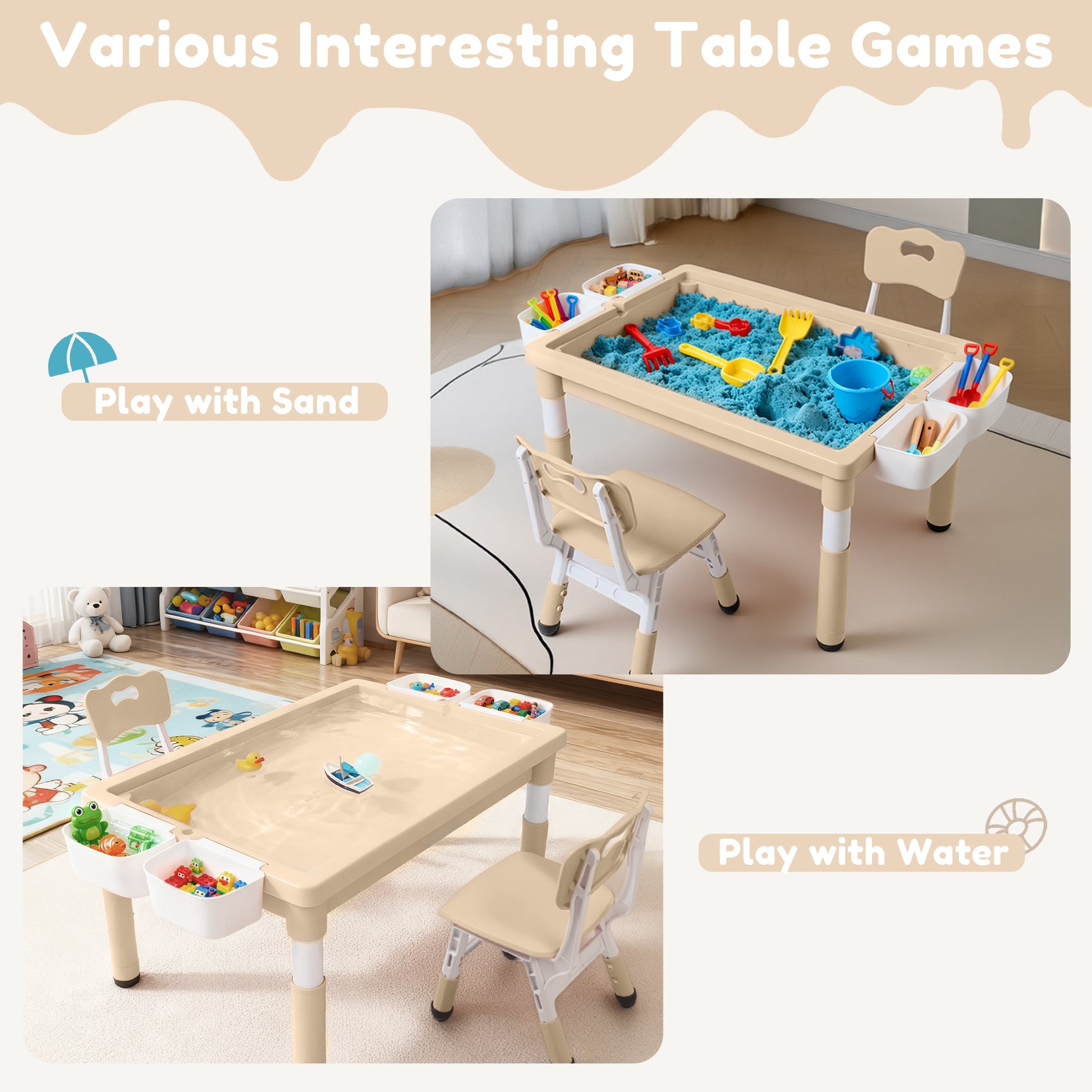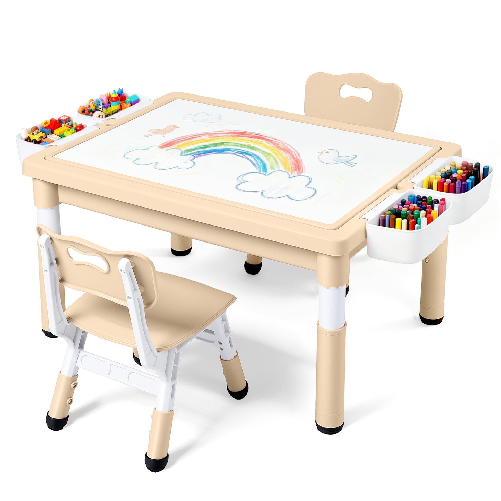 LINLUX Kids Table and Chair Set, 3 in 1 Activity Table for Children w/ Removable Tabletop, Khaki