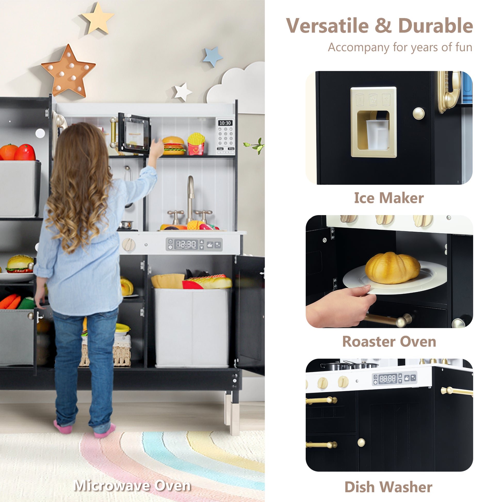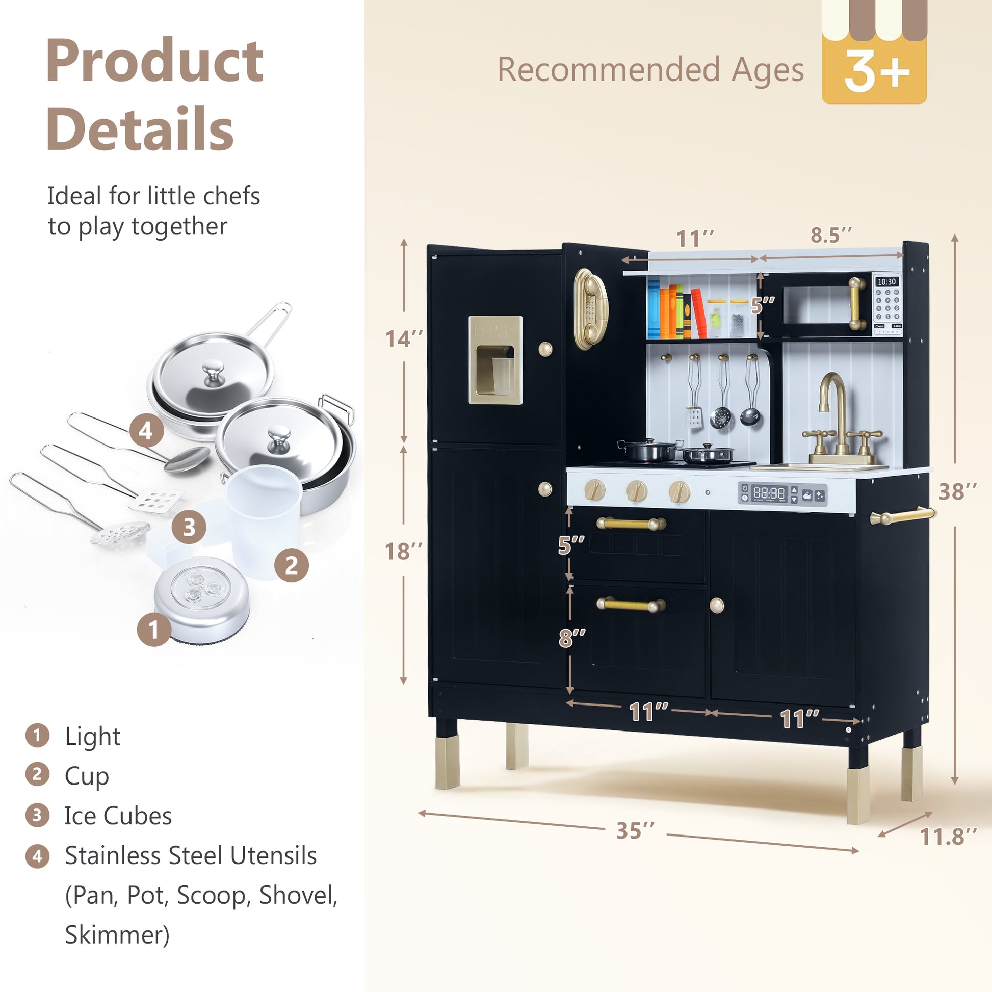 LINLUX Wooden Kids Play Kitchen, Toy Kitchen Playset For Toddler, Realistic Kitchen Sets Baby, Black